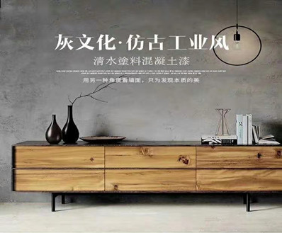 水泥漆,一款色彩簡單,裝飾風(fēng)格多樣的干粉涂料,水泥漆主要在室內(nèi)裝飾中做工業(yè)風(fēng),復(fù)古風(fēng),做舊風(fēng)格效果,復(fù)古時(shí)尚,大氣沉穩(wěn)。